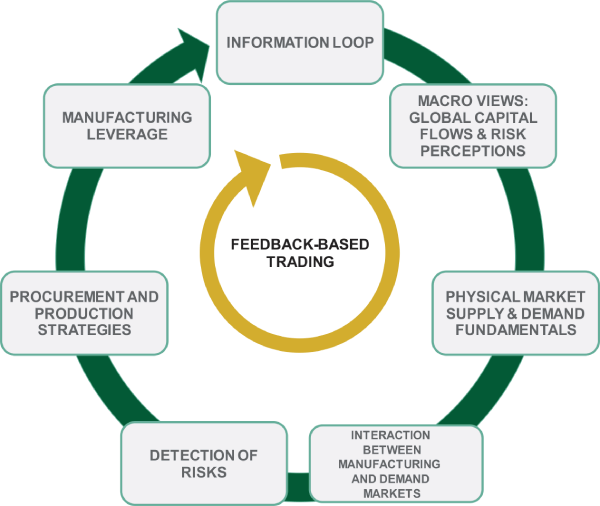 The recurrent feedbacks between the information sourced on the ground through actual deal activity and formulation of macro-economic scenarios (the impact of financial investors’ shifting attitudes to specific commodity sectors) have allowed for unique market positioning This constant interaction between top-down monitoring and bottom-up proprietary information flow has enabled the team to structure trading strategies, which are formulated specifically to exploit such market opportunities